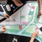 Students work collaboratively on a conceptual model that demonstrates flood mitigation strategies and urban retrofitting in Long Island City Industrial Business Zone. image / provided