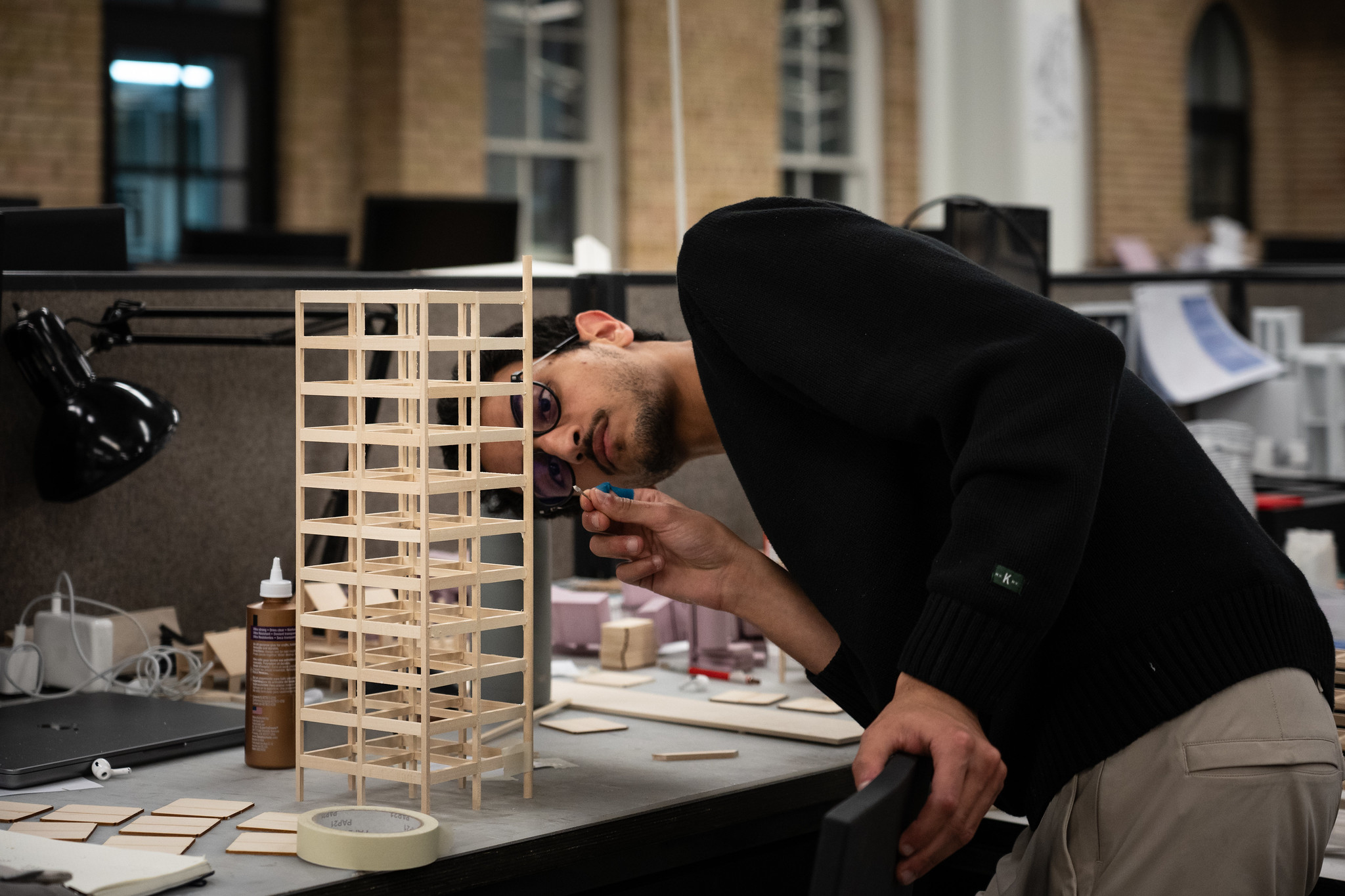 The B.Arch. program combines the intensity and rigor of a five-year professional education with access to the resources of a renowned research university. Architecture department faculty have developed a comprehensive curriculum that emphasizes design, as well as theory, history, technology, representation, and structures. Basic conceptual skills are conveyed early, along with an introduction to fundamental skills. Students learn to communicate ideas through models and drawings, working fluidly between all modes of both analog and digital representation. All students spend their first three years following a core curriculum designed to lay a strong foundation for architectural education and beyond. During the final four semesters, students are encouraged to work across disciplines, focusing on an intellectually rigorous and speculative course of study. Concentrations in architecture are offered in Architecture, Culture, and Society; Architectural Science and Technology; History of Architecture; Theory of Architecture; and Visual Representation in Architecture.