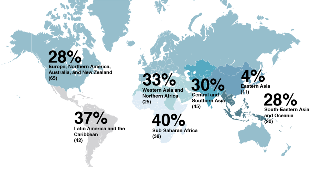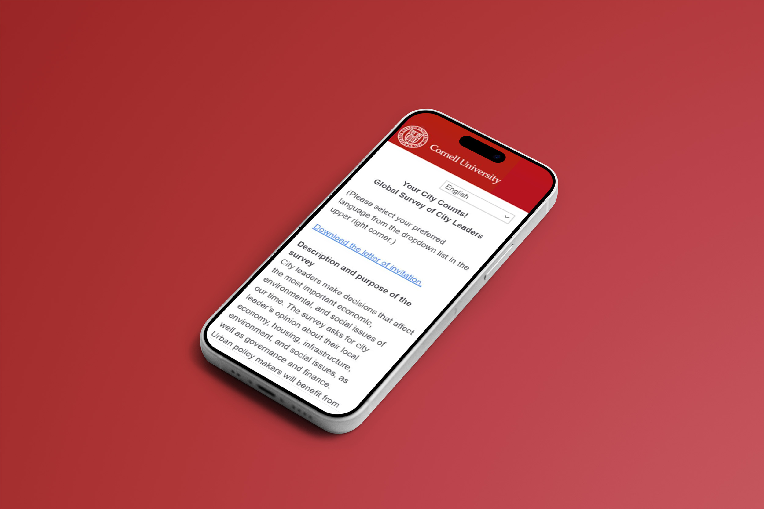 The survey sample was drawn from a comprehensive list (maintained by the United Nations Department of Economic and Social Affairs, Population Division), of 1,860 urban agglomerations in 156 countries with a minimum population threshold of 300,000. Within each urban agglomeration, one municipality (or its political-administrative equivalent), with the largest population was selected to represent the urban agglomeration. The survey sample included 1,012 randomly selected municipalities in 125 countries and represented all of the major geographic regions of the world.
