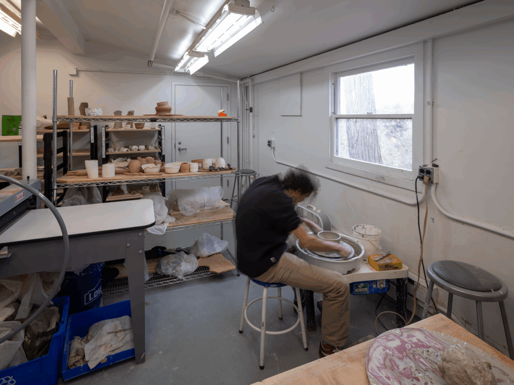 The Jack Squier Sculpture Studio provides students with the resources to explore a wide range of materials and processes, including wood, metal, mold making and casting, carving, and mixed-media fabrication. Located in The Foundry, the studio features two large open work areas equipped with hand and power tools. The ceramics studio supports both hand-building and wheel-throwing techniques.