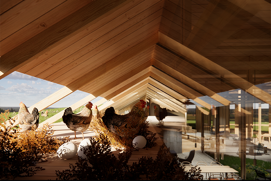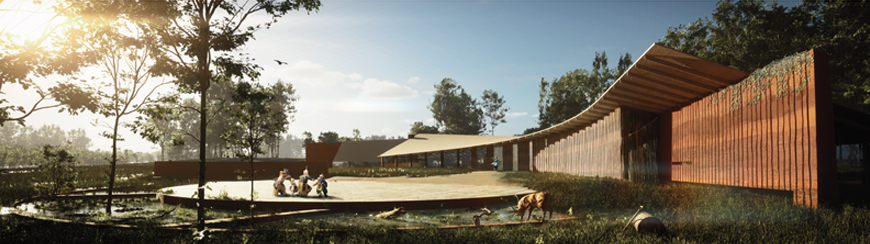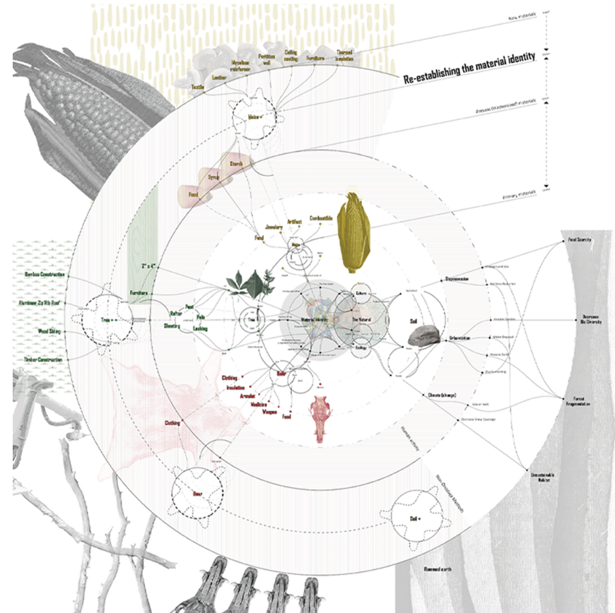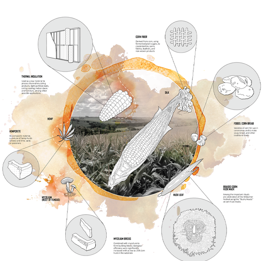 The Onondaga nation is one with rich culture and history. For thousands of years, they maintained a cyclical, circular, and symbiotic relationship with nature. However, since the age of European colonization, the land and resources of the nation have been exploited, and their cultural practice has been limited. Inspired by the hilltop view at the site, where we could see the village from afar, we wonder how we could make this land truly theirs. We first learn from the topographic land, observing where it rises and descends, and how it makes turns. We then mark these locations and construct unique earth walls following these marks. As cedar is the community’s sacred tree, we surround the marked earth walls with cedar columns to shape the enclosure space and to inform programmatic areas.