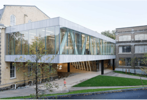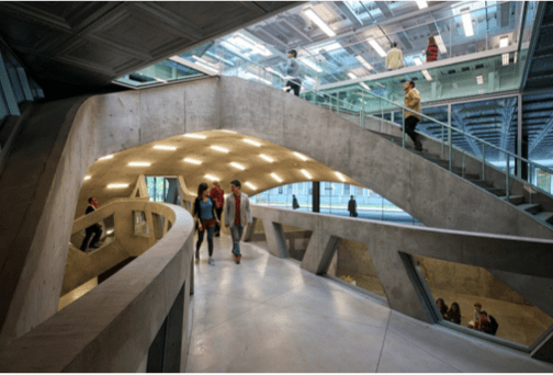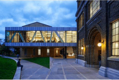 Milstein Hall's 47,000-square-feet weaves its definitively contemporary architecture through the college's historic buildings, creating a dynamic landscape and a vibrant central meeting place that lends itself to collaboration.