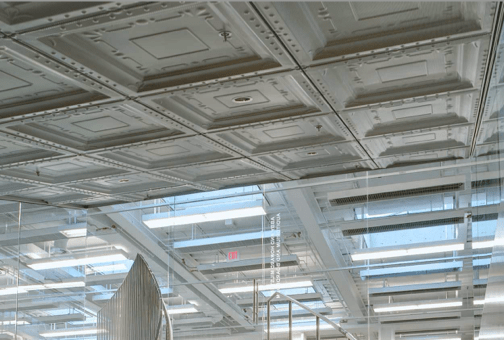 Milstein Hall's materials and finishes are expressive of its construction. The materials in the upper level are predominantly exposed steel and floor-to-ceiling glass facades. The lower level is constructed of exposed concrete. The upper and lower levels create two different material environments expressive of Milstein Hall's structure and form.