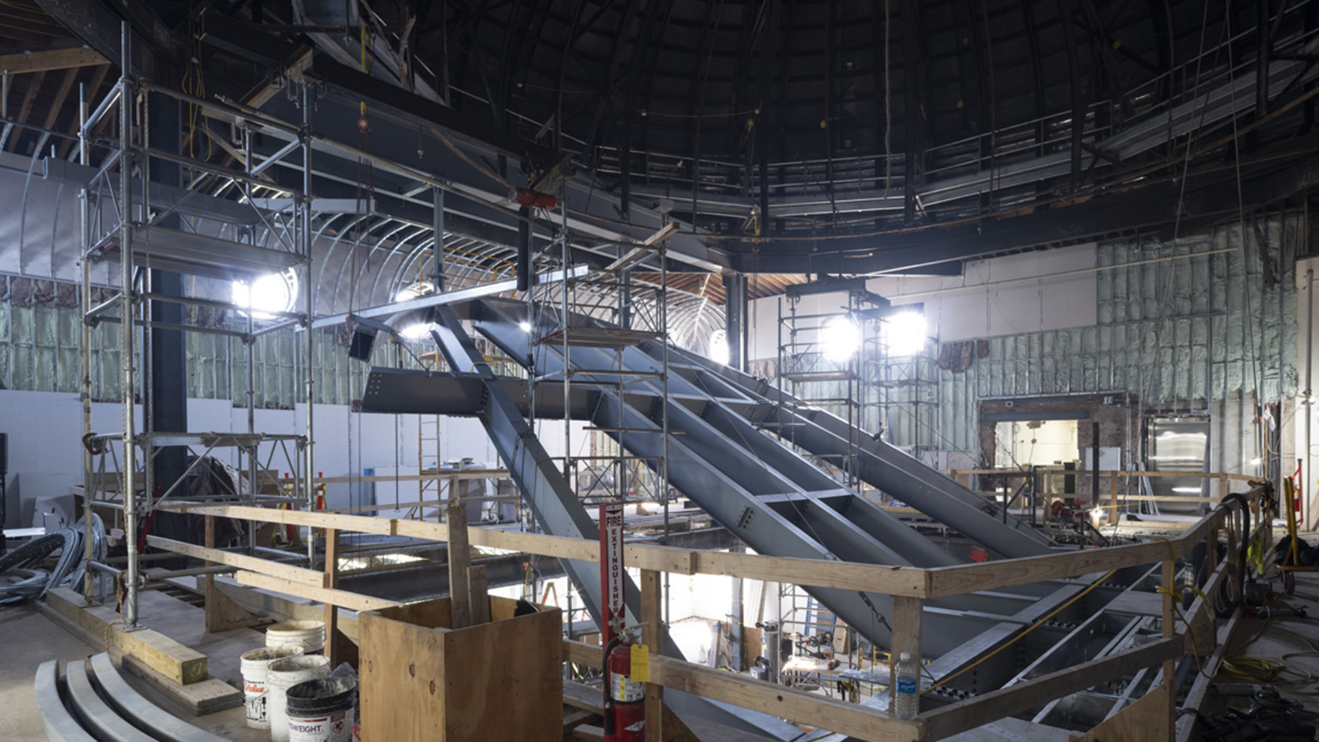 Sibley Dome pre-construction reveals a rare view of the domed ceiling's metalwork.