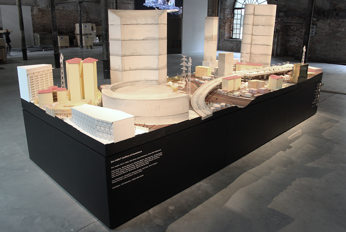 Heisel's and Wisniewska's past research and scholarly work are part of the collaborative interdisciplinary team for Addis Ababa, exhibiting in the "Co-habitats" section of the Biennale, at the Arsenale. Their installation, Quo Addis: Conflicts of Coexistence is a fictional model of the Ethiopian capital city consisting of multiple layers, each representing a particular political regime whose traces remain in Addis Ababa's urban socio-spatial fabric — from the Age of Empire to occupation to European-sponsored modernization to the USSR-backed socialist regime and others, through to contemporary mega-development ventures sponsored by foreign actors. To this amalgam, a final layer foregrounds alternative ways of how Addis Ababa might live together in the future. The installation is the result of many years of collaborative research between the involved partners: Marc Angélil, Katharina Blümke, Dirk Hebel, Felix Heisel, Jenny Rodenhouse, Bisrat Kifle Woldeyessus, Willy Abraham, Nikolai Babunovic, Emmanuel Bekele Fulea, Uta Bogenrieder, Sascha Delz, Sarah Graham, Andreas Heil, Ben Hooker, Philipp Jager, Anita Knipper, Ephrem Mersha Wolde, Manfred Neubig, Manuel Rausch, Bernd Seeland, Cary Siress, Marta H. Wisniewska, Elena Boerman, Luca Diefenbacher, Georg Heil, Sebastian Kreiter, Selin Onay, Rouven Ruppert, Philipp Schmider, Julius Schwartz, Sonja Steenhoff, Clemens Urban.