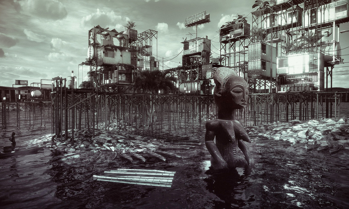 Jeyifous's work with Mpho Matsipa (Johannesburg, South Africa, and New York) appears within "Across Borders" at the Giardini, Central Pavilion. One of five scales explored by the biennale, "Across Borders" encompasses five explorations: Transcending the Urban-rural Divide: mitigating the growing social and economic differences between global cities and the global hinterland; Linking the Levant: negotiating sharp political divisions in the Levant region; Seeking Refuge: examining the spatial challenges of forced displacement; Resourcing Resources: proposing better distribution of our common resources; Protecting Global Commons: bringing the architectural imaginary to engage with endangered treasures such as the Poles, the Amazon, the Oceans, the Indo-Pacific Region, and the Air.