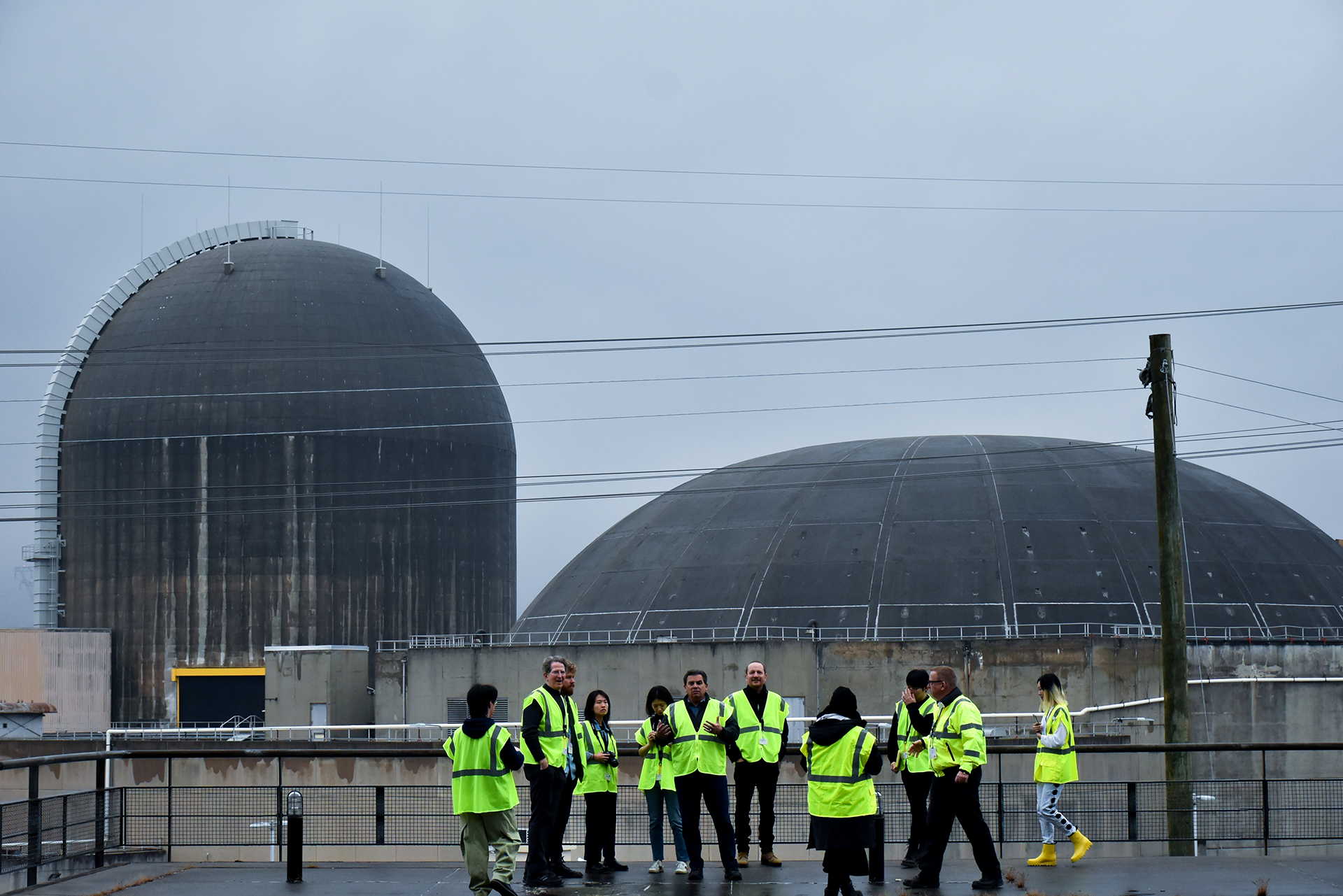 "Seeing these structures up close was a powerful experience," says Gabriella Kim (B.Arch. '24). "I had never done an adaptive reuse project before, let alone set foot in a nuclear power plant. I thought this opportunity to not only visit the site but to also engage with it down to every single detail would be an amazing opportunity. Based on my experience this semester, everything has aligned with my expectations; the moment we approached the giant reactors — 200 feet tall — will stay with me forever."