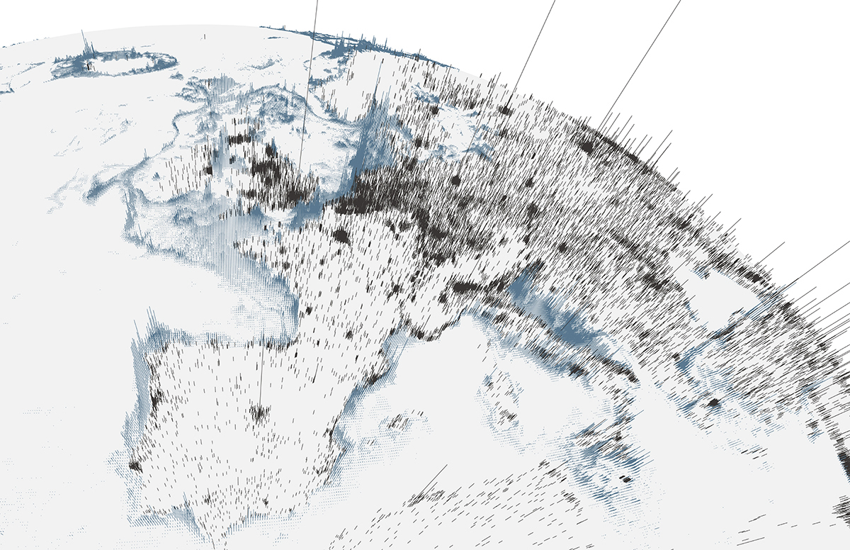 I find it very compelling how politics, geomorphology, and the built environment all influence one another and leave signals in big data that can be turned into art.