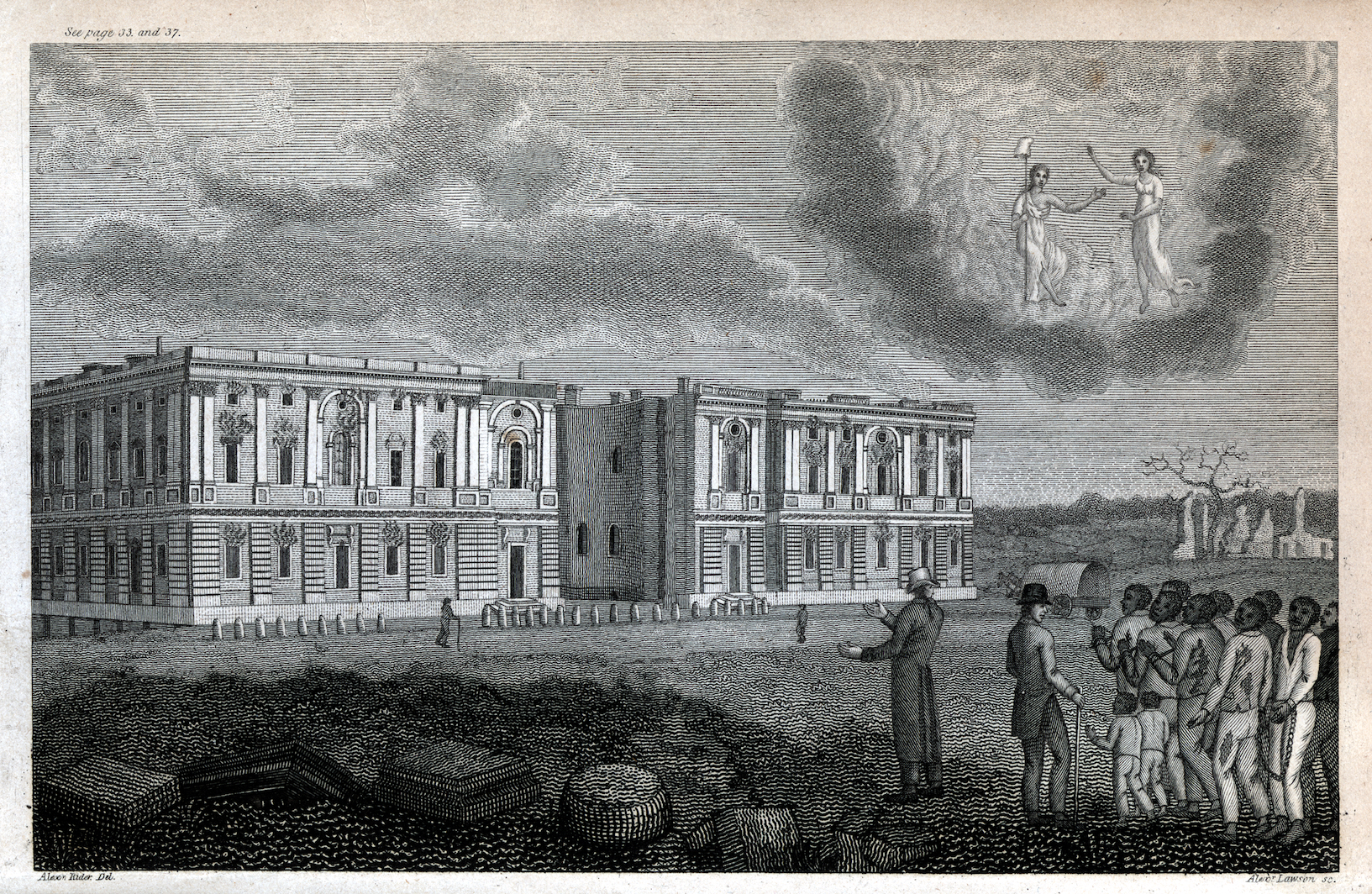 View of the Capitol of the United States after the conflagration in 1814 by Alexander Lawson including enslaved workers, from the abolitionist book A Portraiture of Domestic Slavery in the United States by Jesse Torrey. image / provided, courtesy of Library Company of Philadelphia.