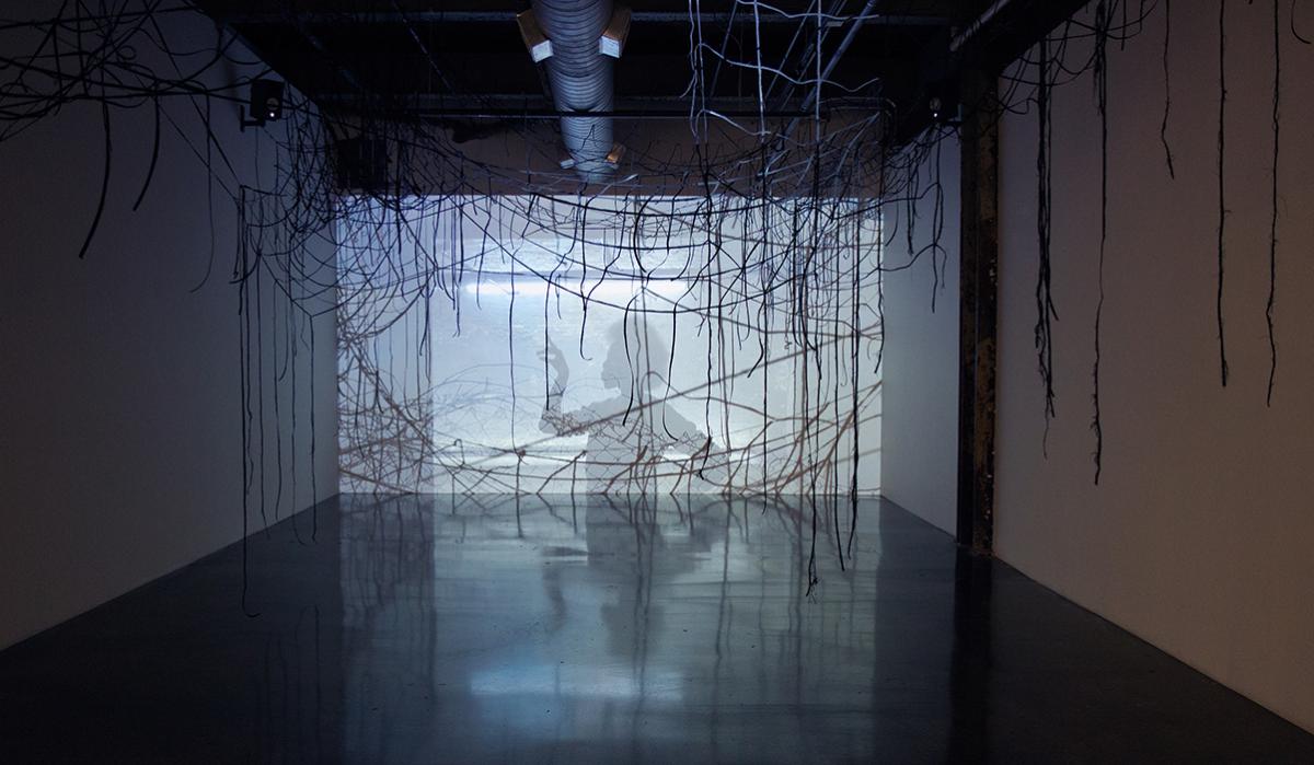 Libration (2019), HD color video projection, four-channel audio, elastic, thread, installation view from Resident Artist Exhibition at Red Bull Arts Detroit, Detroit, Michigan. photo / provided"The Department of Art is pleased to invite Miatta Kawinzi's teachings and share her voice with our students and the Cornell community," says Paul Ramírez Jonas, department chair. "As an artist focused on radical possibility and reimagining, her mentorship and dialogue with graduate students in their studios this fall will bring unique insight into our current moment, both culturally and as it relates to art practice, and so immense value to the development of their creative practices."