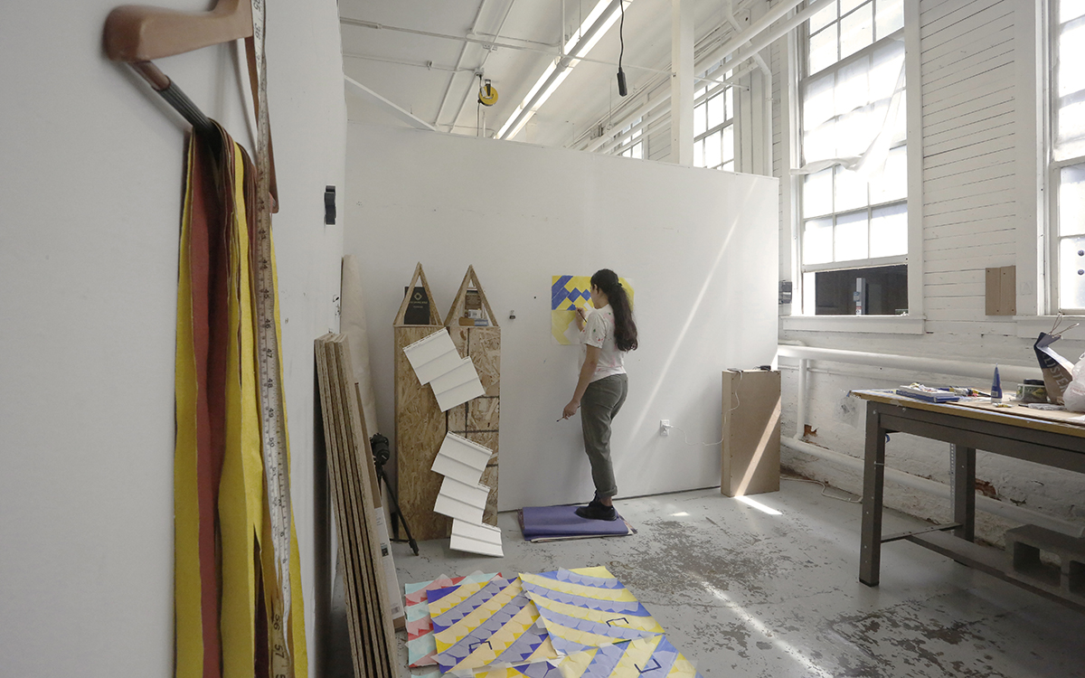 Layla Zubi (M.F.A. '22) in her studio in The Foundry where graduate students in the fine arts work in their studio spaces. Art Offerings Expand From Music to Literature, Self to Culture, Ancient to Contemporary