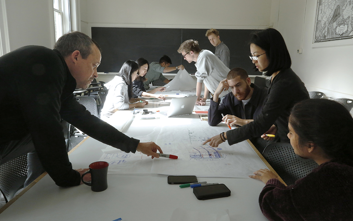 In New York City, offerings at The Gensler Family AAP NYC Center include several choices for option studios, special topics in architecture and visual representation, and cross-disciplinary offerings. The center anticipates the largest single-semester cohort in its 15-year history. Florian Idenburg begins a five-year appointment as the first New York City-based Professor of the Practice in Architecture, teaching an option studio and leading Ventures, a new lecture series. New Associate Professor in architecture Jesse LeCavalier and Visiting Critic Christopher Leong of Leong & Leong will also lead option studios, and Visiting Critic Peter Robinson (B.Arch. '98) returns for his third semester to lead a special hybrid option studio where planning and architecture students collaborate with local partners on critical urban issues in Brownsville; Brooklyn; and Jamaica, Queens.