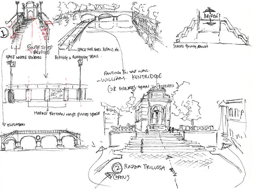 A central theme of the class was to emphasize how architecture affects and is affected by the development of place; specifically, the way it negotiates varying, and at times contradictory, notions of past, present, and future. Rome was therefore approached as a vibrant milieu; a palimpsest of memories, complex and richly layered. The city was the laboratory for discovering the reality of architecture; the experiential, social qualities beyond that of walls, planes, and structure. From the fragments, traces, and stories of the city, a new architecture that has yet to be imagined might evolve.