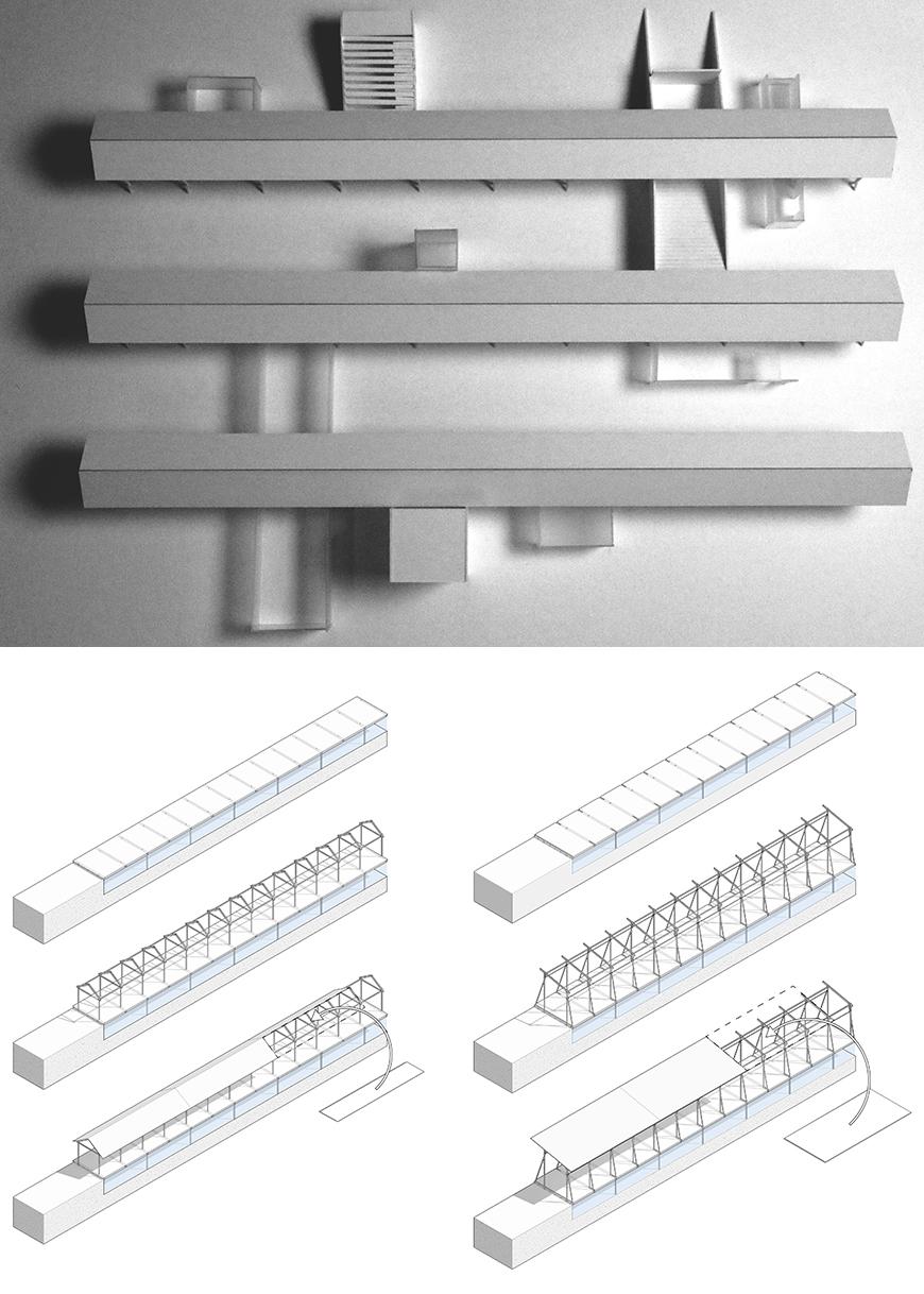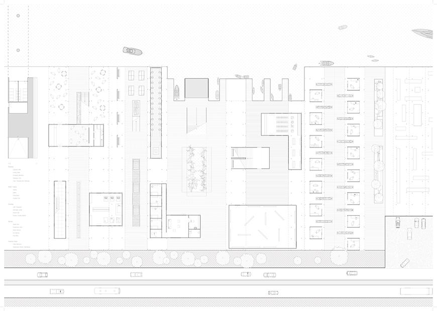 With simple sheds acting as "spines" into which programmatic elements may be inserted over time, the open-ended intervention transforms reclaimed material into shelter, space, and place for various social interactions. The long docks extending out into the water with interspersed community moments allows for both a temporal and physical flexibility while treading lightly on the already overdeveloped city fabric.
