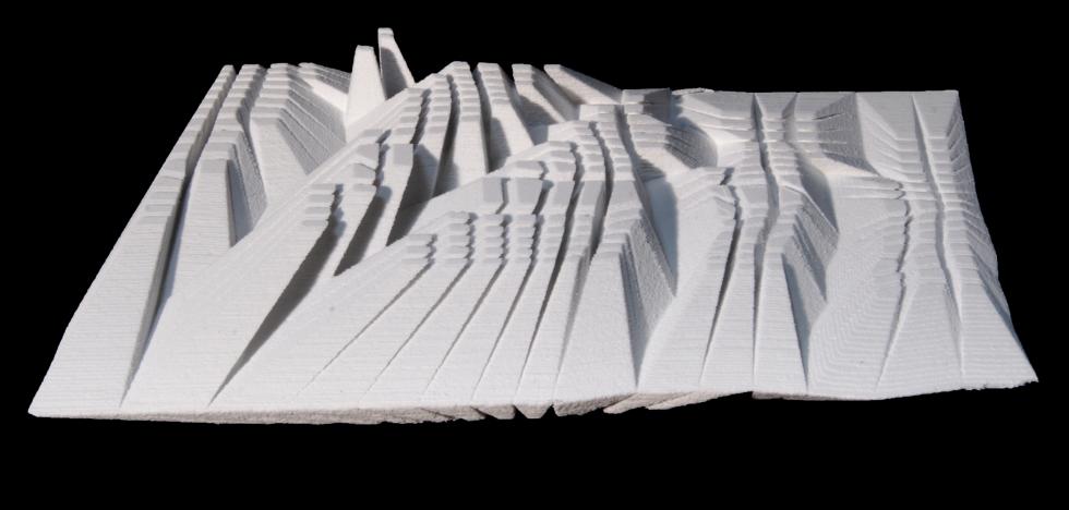 The investigation began with an interest in the extreme variation between speed, distance traveled, and density of train lines in the Yangtze River Delta Region. In an attempt to make the research more comprehensive the group focused on the train connections between three main cities (Hangzhou, Shanghai, and Nanjing) which have both a bullet train connection as well as a local train connection. The study explored the point of connection (where trains were meeting at the same station) and segregation (where trains missed or skipped stops) through parameters like speed of train travel, number of stops, population density of these stops and distance to and between stops. With this information as a base model we explored ways the geometry could react to, and with one another between layers of the final model. The geometry is always responding to the layer adjacent to it, so the center layer responds differently depending on which direction it is being pulled (up or down). As a unit the final model displays and validates, through a geometric language, the relationship of the local train (center layer) as a mediator between bullet train stops (top and bottom layers).